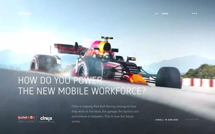 新移動員工隊是思杰旗下的一個網站,它使用全景攝影技術向觀眾展示思杰如何支持紅牛車隊的新賽車。即使你不是賽車愛好者,該網站的巧妙動畫也可以解釋復雜的汽車技術,這一點很難忽略。